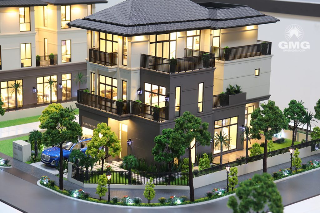 Những người làm mô hình thường làm mô hình biệt thự theo tỷ lệ nhỏ, ví dụ 1:25, 1:50. Đôi khi, nhà sản xuất mô hình đã sử dụng các thành phần cơ giới hóa của mô hình để lấy các mức sàn lên và xuống để hiển thị thiết kế. Nó có thể bao gồm đồ nội thất, thiết bị chiếu sáng, hồ bơi và các tiện nghi khác. Những người làm mô hình sử dụng mô hình để minh họa các dự án cho các chủ sở hữu nhà ở tiềm năng và hỗ trợ họ bán các lô đất.